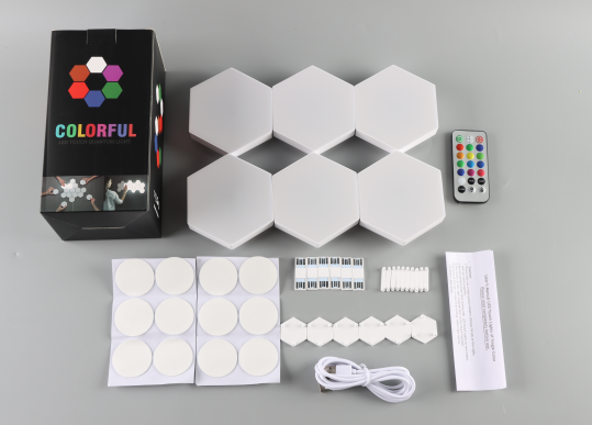 Light up your living or working space and make a statement with the stylish Hexagonal Wall Lamp. Perfect for impressing guests or simply providing some extra light in an area, this modern wall lamp is sure to be the center of attention. Offering 13 different color selection modes as well as 5 color change methods – such as color, jump, flash and timing – you can easily create the atmosphere you desire. With two switch control methods available - remote-control or touch-control - it's easy to change up the vibes whenever you like. Let this eye-catching hexagonal lamp be your go-to source of illumination today!
