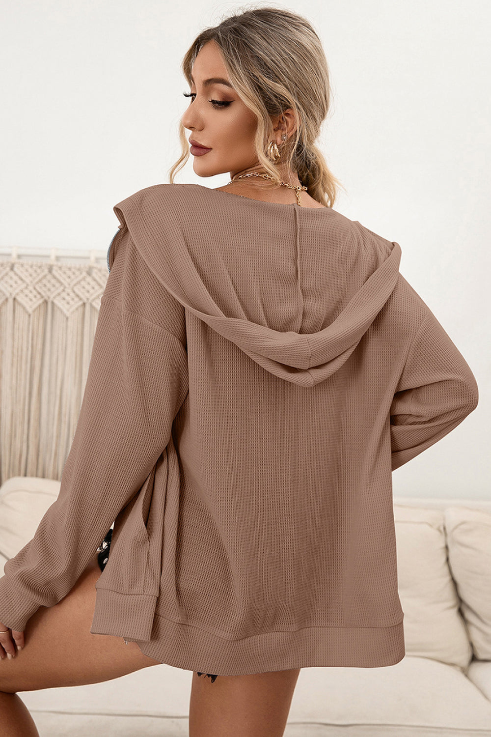 Zip Up Waffle Knit Hoodie